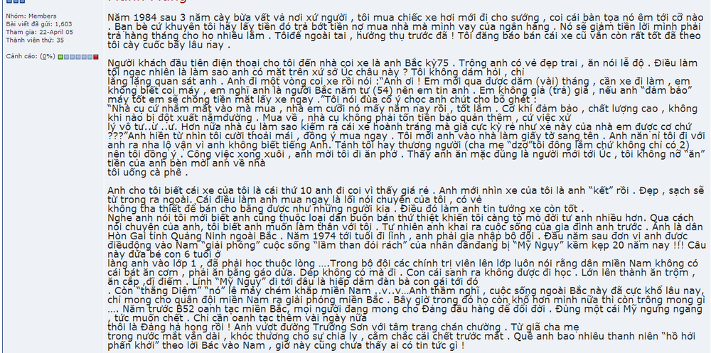 Cám ơn anh và đọc giả BTH đã quá rộng lượng với kẻ tầm thường này trong 10 năm qua . Tôi không muốn làm tổn thương diển đàn BTH thêm nửa .